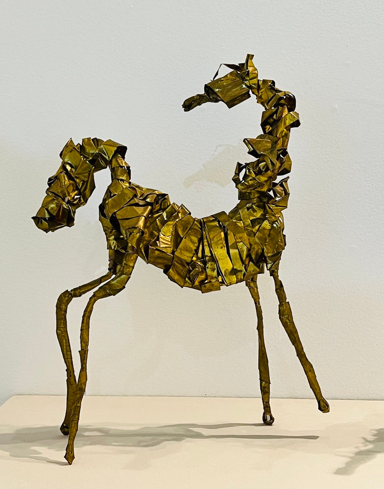 BRASS HORSE LOOKING OVER ITS SHOULDER