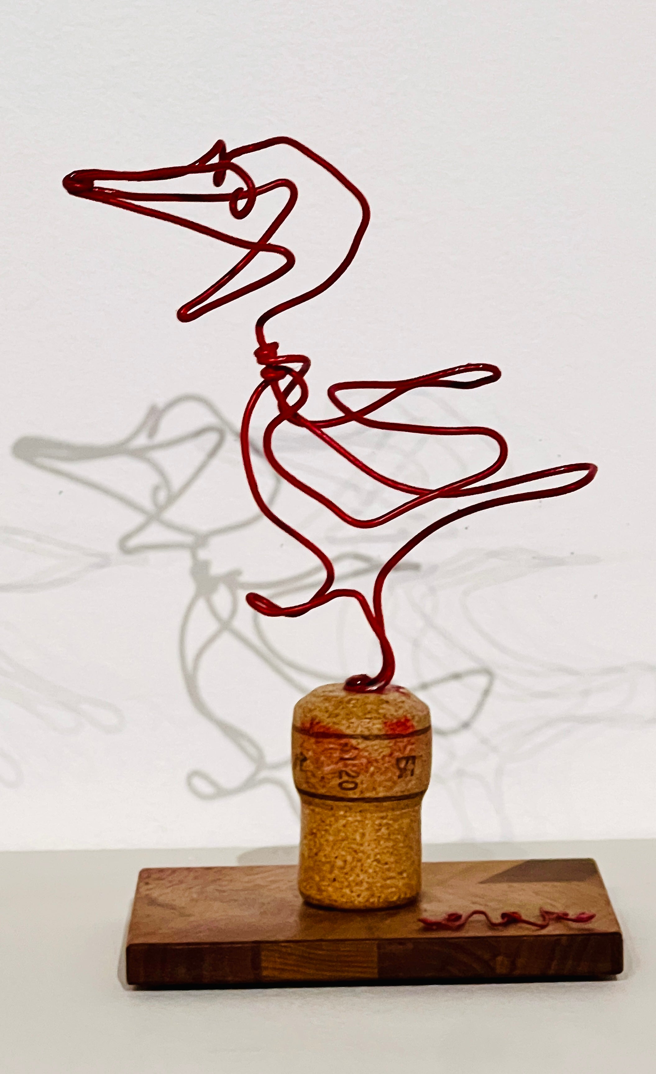 Steel wire, paint, on cork and parquet wood base