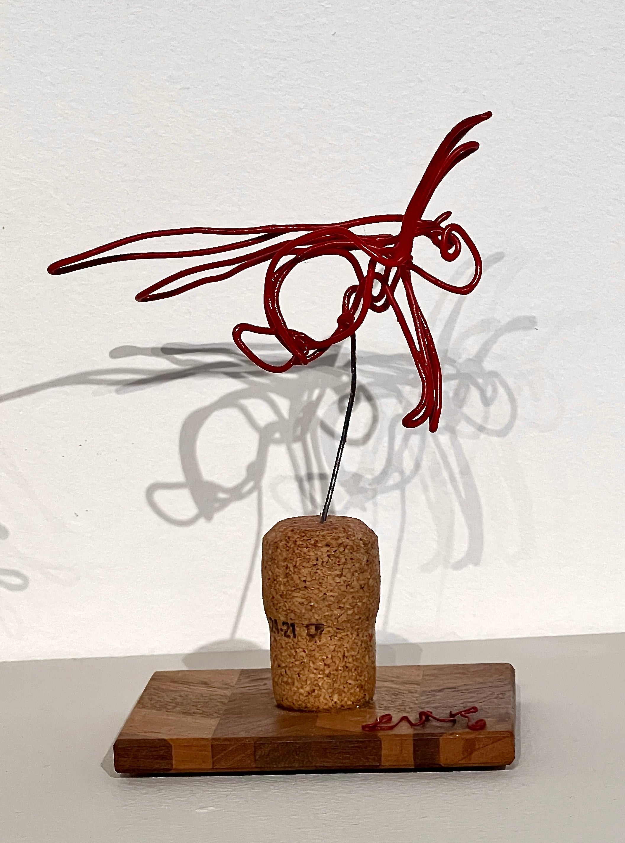 Steel wire, spray paint, cork on parquet wood base