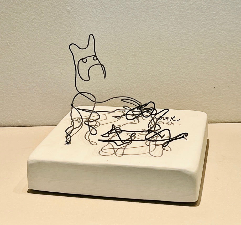 Steel wire on painted wood base